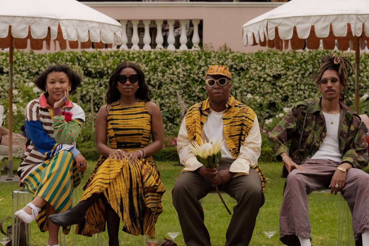 (left to right) Masego Morgan, Oratile Moh, Wanda Lephoto and Francesco βFranadillaβ Mbele attend the Lukhanyo Mdingi show at Confections & Collections | πΈ Candice Boddington for Mount Nelson