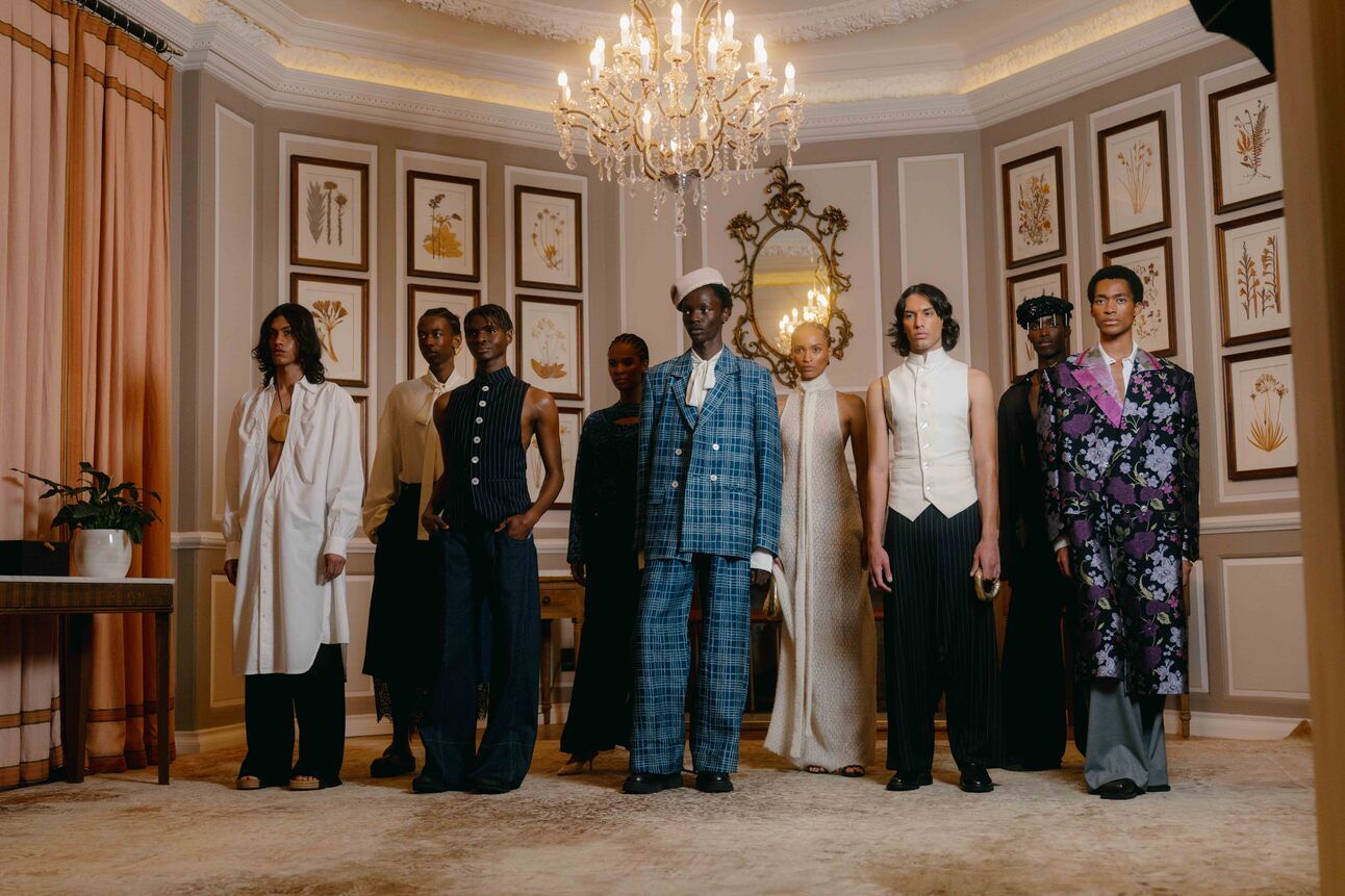Models gather for a photo at the end of the Lagos Space Programme show at Confections & Collections | πΈ Paige Fiddes for Mount Nelson